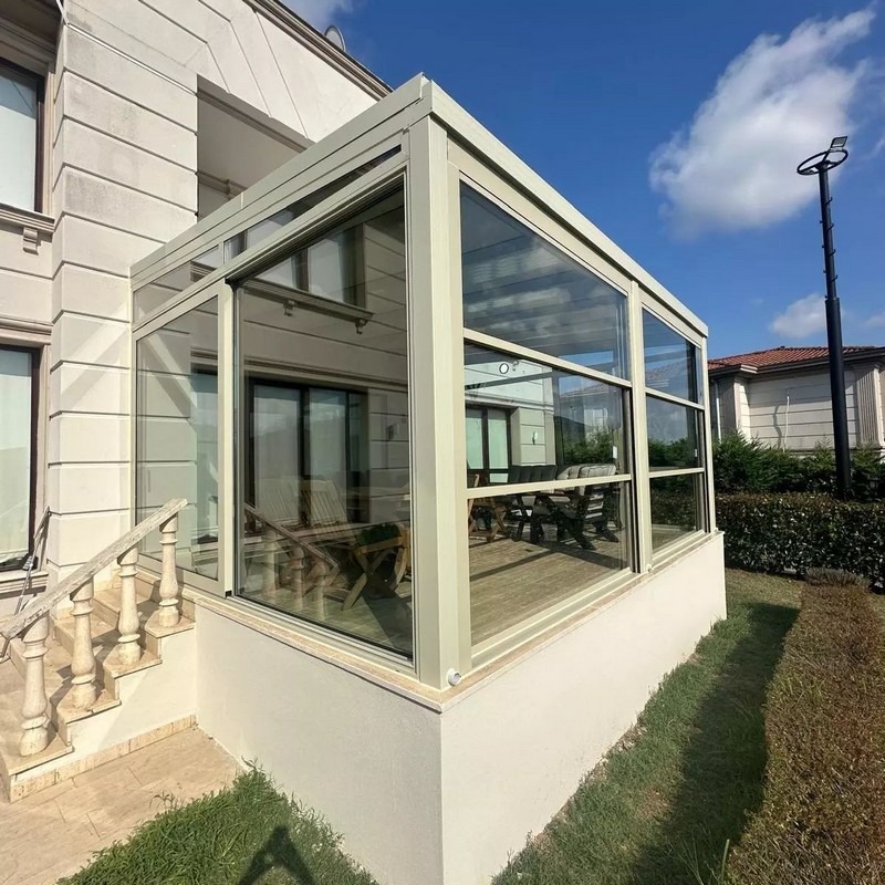 3. Üstün Yalıtım ve Güvenlik: Sistem kapalı konumdayken, paneller arasındaki özel contalar sayesinde yüksek düzeyde ses, ısı ve su yalıtımı sağlar. Aynı zamanda temperli (güçlendirilmiş) cam kullanımı ve kilitli yapısı sayesinde güvenlikten ödün vermez.